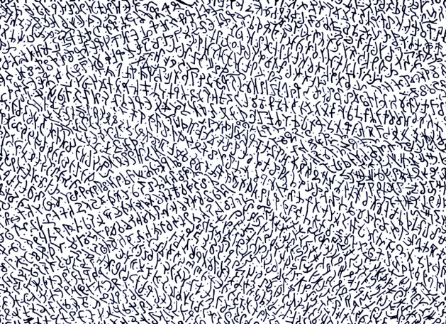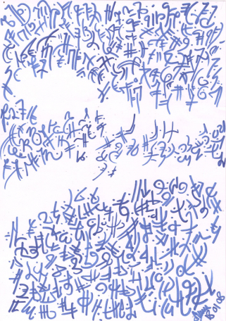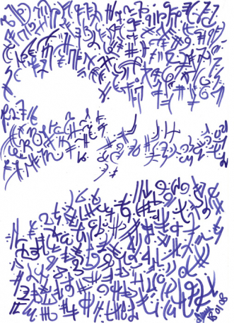 Art brut ou surréalisme ? Dessins calligraphiés – caractères – symboles – signes : écriture automatique.