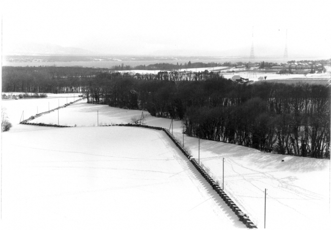 Thématique : La ligne de fortification antichar de la Promenthouse communément appelée « Les Toblerones ». Longue de 15 kilomètres environs, de Gland à Bassin, elle est composée de plusieurs formes de bloc en béton : des pyramidons pointus, des étoiles, et des cubes tronqués, mais le cube tronqué est la forme de bloc qui constitue la plus grande partie de la barrière anti-char.