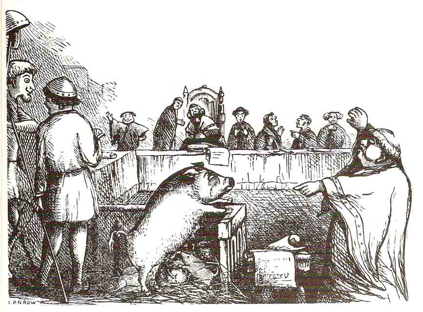 En 1457, à Lavegny, une truie qui avait en partie dévoré un enfant fut pendue pour meurtre. On acquitta ses six porcelets, complices trop jeunes pour avoir compris la portée d’un tel acte.